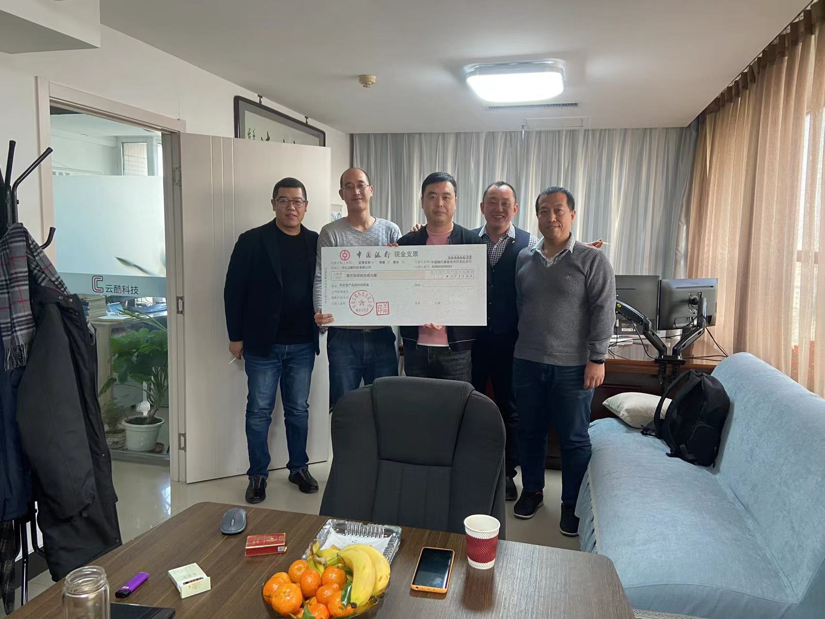這是公司實踐的合伙人制度第四年,會議上王總及尹總、于總為共創合伙人團隊代表發放共創獎金。